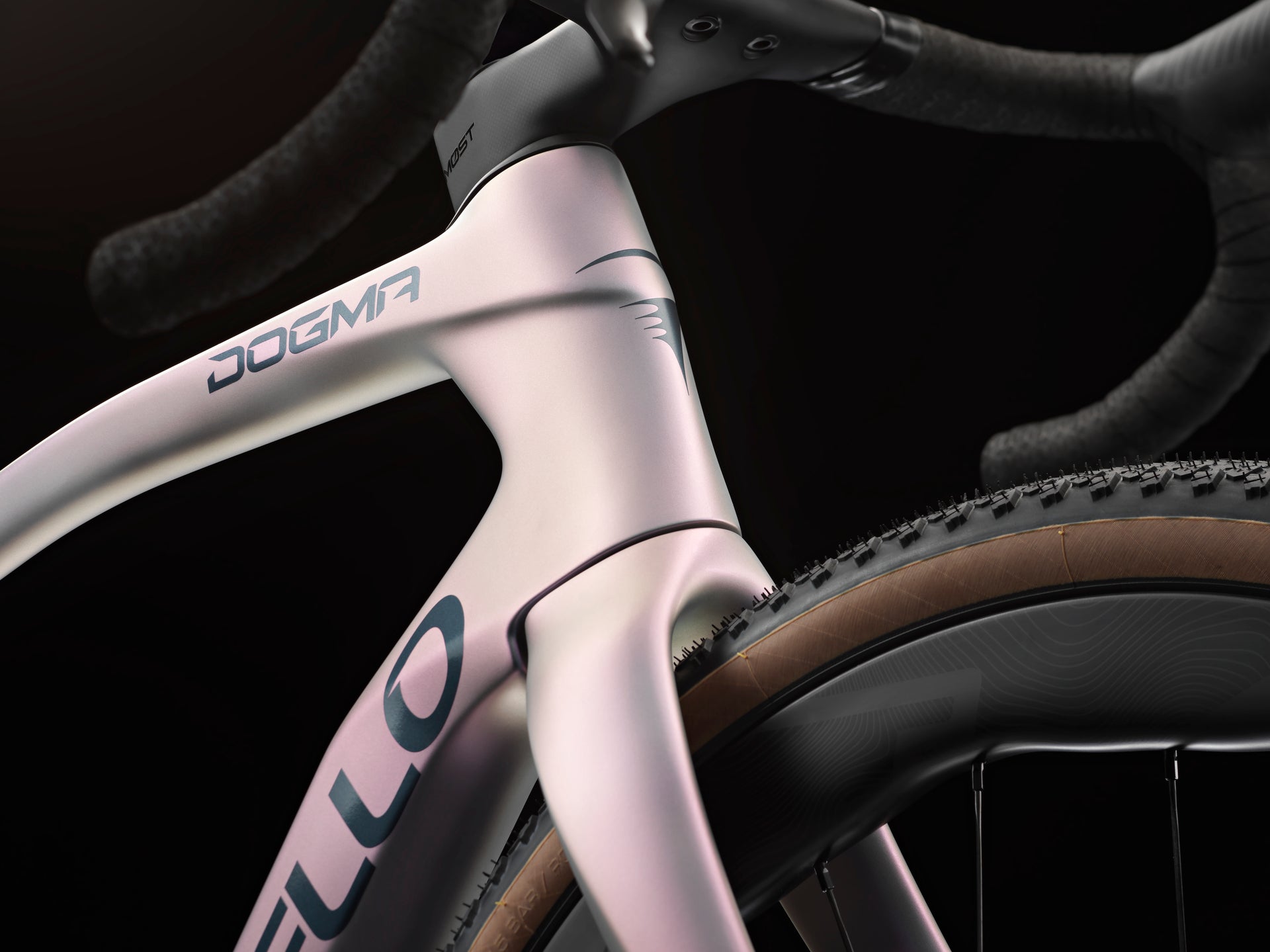 To be our lightest aero gravel bike, specifically designed to win the UCI gravel races. It blends the speed of the Dogma F, the off-road handling