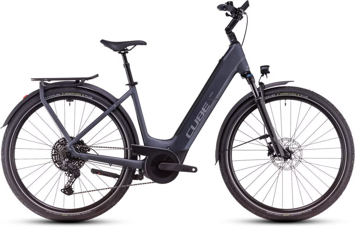 The Cube Touring Hybrid Pro 625 Easy Entry Electric Hybrid Bike is ideal for urban commuting and leisurely rides. It features a step-through aluminum frame with comfort geometry for easy mounting and dismounting. The Bosch Performance Gen 3 motor and 625Wh battery offer ample power for long journeys. Equipped with a Shimano 11-speed drivetrain and hydraulic disc brakes, it ensures smooth shifting and reliable stopping power, making it suitable for everyday use and occasional adventures.