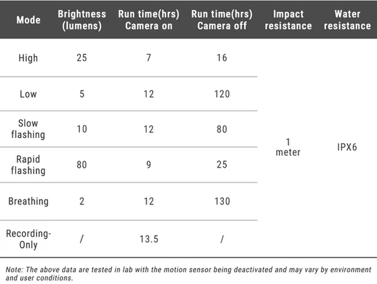3200mAh battery provides up to 12 hours of continuous camera + tail light use on a full charge